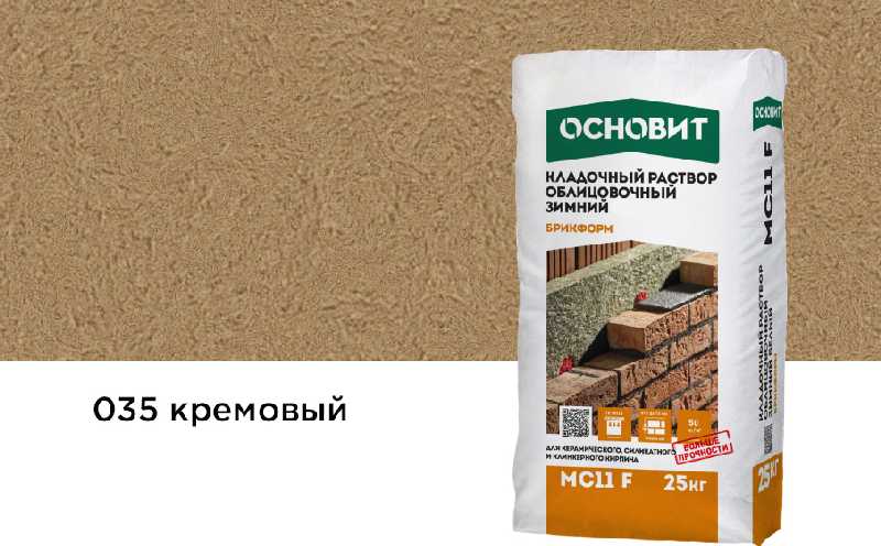 Кладочный раствор ОСНОВИТ БРИКФОРМ МС11 F зимний предназначен для кладки стен из облицовочного кирпича с водопоглощением до 12% с возможностью расшивки швов в момент укладки при температуре окружающей среды и основания от -10 до + 10°С.