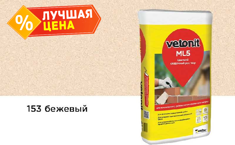 Цветной раствор weber.vetonit МЛ5 зимний (weber.vetonit ML 5 winter) №153 Марес, бежевый, предназначен для достижения оттенка шва, подходящего к цвету кирпичной кладки.