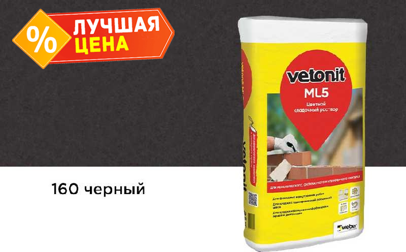 Цветной кладочный раствор weber.vetonit МЛ 5, черный, №160 зимний, 25 кг
