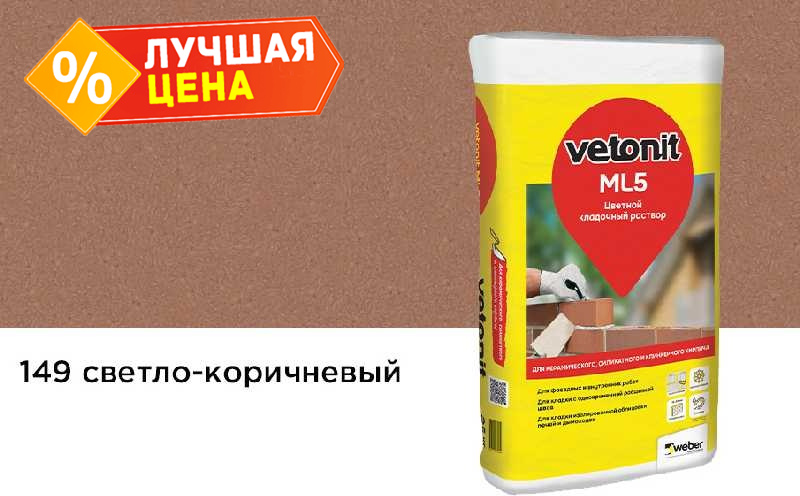 Цветной кладочный раствор weber.vetonit МЛ 5, светло-коричневый, №149, 25 кг